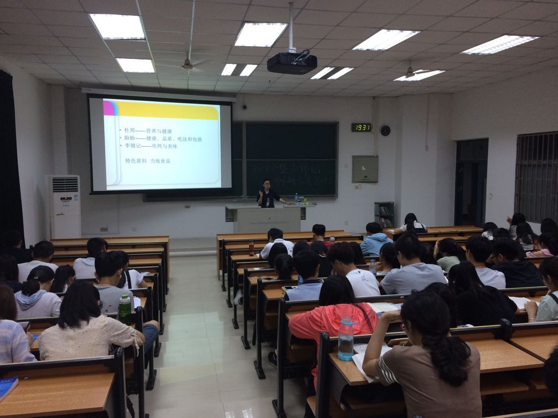 首先宣讲人张雯老师用内容丰富,条理清楚的ppt为大家介绍了往届我院学生的得奖作品,比如燕丝,方便鱼糜面,笋心笋意等,充满了创意。同时老师也分析得奖作品的得奖原因,并鼓励大家从生活中寻找灵感。接着老师告诉同学们写策划书应该注意什么,包括后续操作的注意事项,并简单介绍了盼盼与李锦记两个创新大赛的比赛要求。宣讲会的最后,老师让同学们提出疑惑,并耐心进行解答。