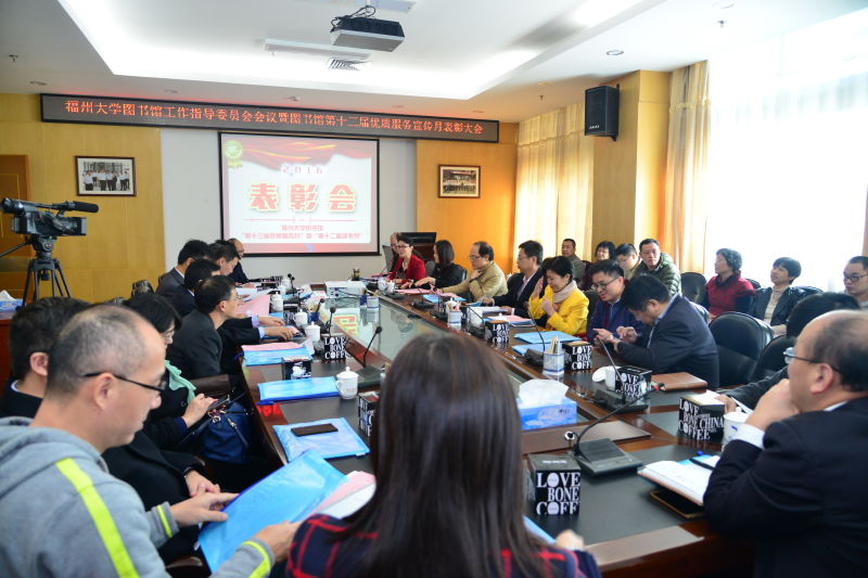 2017年1月4日上午,福州大学图书馆工作指导委员会会议,图书馆第十三届优质服务宣传月暨第十二届读书节表彰大会在图书馆二楼会议室举行,福州大学图书馆工作指导委员会委员以及获奖代表共计66人出席了会议。会议分为两部分内容:一是图书馆第十三届优质服务宣传月暨第十二届读书节表彰会,二是福州大学图书馆工作指导委员会会议,会上表彰了在优质服务宣传月中表现优秀的单位和个人。我院荣获了“图书借阅量优胜学院”奖,图书馆工作指导委员会委员、我院汪少芸教授代表学院上台领取了“图书借阅量优胜学院”锦旗。