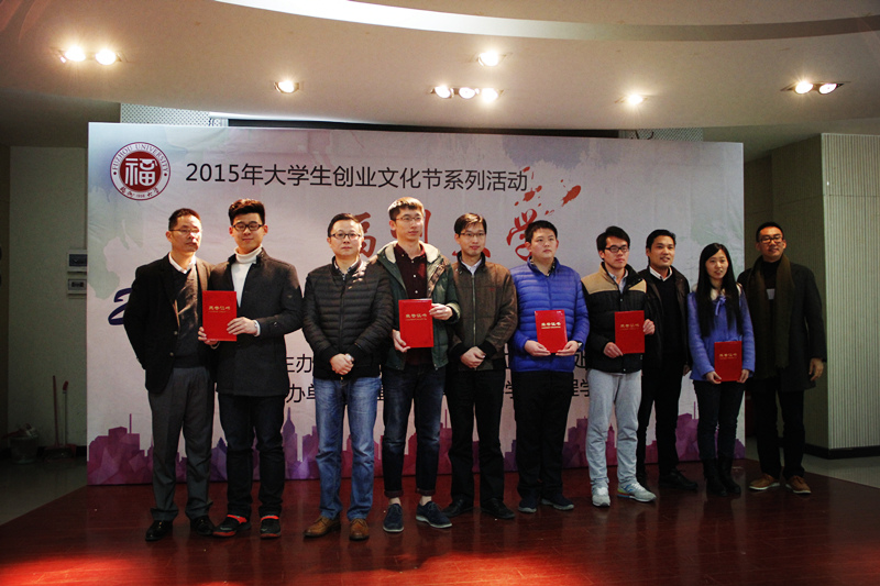 12月18号,由福州大学学生工作部主办、金沙集团1862cc成色承办的“福州大学2015年十佳创业项目大赛”决赛,在素拓多功能厅举行。本次大赛有幸邀请到福建创科金融服务有限公司总经理施志峤先生、福建阳光能量孵化器管理有限公司执行董事兼CEO陈秀斌先生、福州市道明投资管理有限公司执行董事王震先生、北辰星资本飞马旅福建中心总经理胡顺强先生、永益物联网投资总经理徐国铭先生担任评委。福州大学学生处副处长叶青,就业中心主任张志忠担任嘉宾。