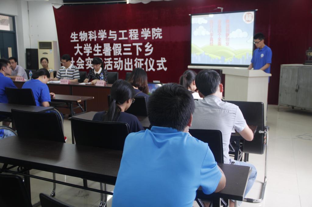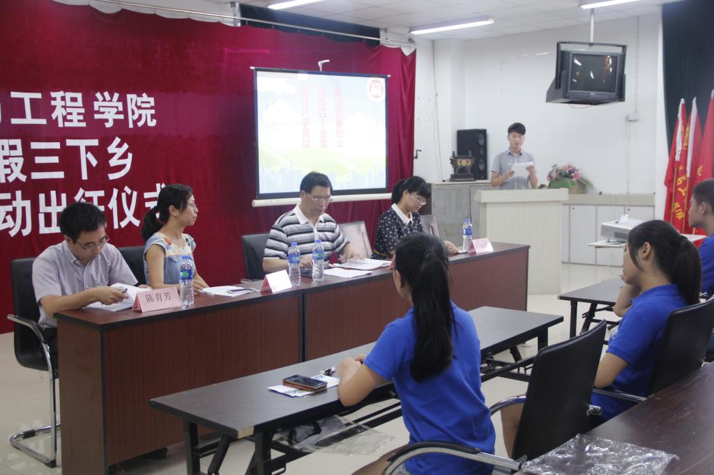 本次出征仪式共分为三个部分进行,首先,由参加暑期三下乡实践活动的代表郎斌同学发言并对三下乡过程中应遵守的相关规定进行宣誓。随后,郑延平副书记对本次三下乡活动作了重要讲话,他讲到,作为一名大学生,应该积极参加一些暑期社会实践活动,在活动中同学们可以去体验乡村生活,并充分发挥自己的专业特色推广一些农业实用技术,以进一步落实党中央的惠农政策。同时他也强调在活动中一定注意自身安全,不要单独行动,队长在活动中要做好统一部署,保证活动有序进行。最后由郑延平副书记及各年级辅导员对本次暑期三下乡实践队进行授旗。