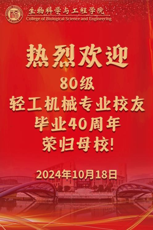 2024年10月18日,我院80级轻工机械校友毕业40周年重返母校,共聚福州大学旗山校区。福州大学原副校长林键、福州大学校友总会会长程玉敏、院党委王秀萍书记、汪少芸院长、王航副院长等领导和学院师生代表参加校友接待。