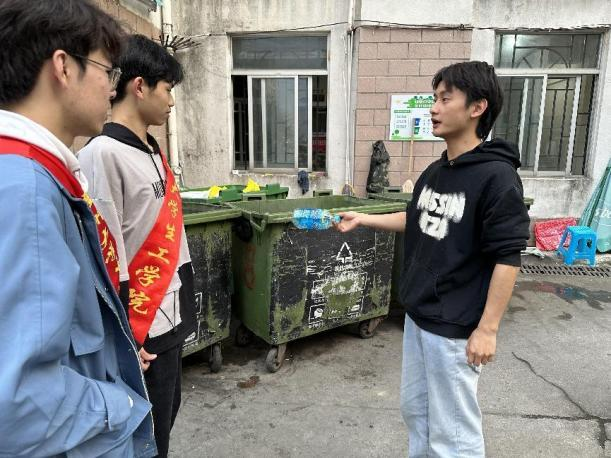 3月5日,我院在生活区8号楼开展了卫生督导活动,帮助并监督同学做好垃圾分类。活动现场,志愿者们在垃圾投放点位上进行督导,当有同学带着垃圾来进行投放时,志愿者们便会上前帮助同学们进行分类,并讲解垃圾分类的重要意义,倡导同学们在日常生活中要养成垃圾分类的良好习惯。