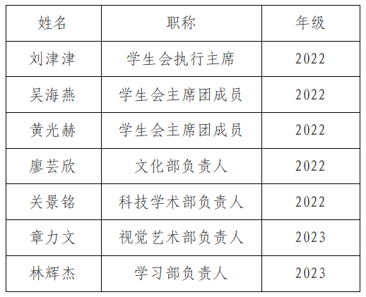 金沙集团1862cc成色2023届学生会主席团、各部门负责人任期已结束,现根据《金沙集团1862cc成色团委学生会主席团选举办法》《金沙集团1862cc成色团委学生会部门部长选举办法》等相关文件的规定,由个人自愿报名,经学院学生代表大会选举,团委审核,院党委审批后,最终确定金沙集团1862cc成色2024届学生会主席团、各部门负责人,现将名单公示如下: